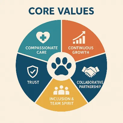 We believe in open communication and mutual respect, working alongside pet parents as trusted advisors and empowering them to make informed decisions for their pet’s well-being. We listen with curiosity, respect the needs, values, and traditions of our diverse client base, and build relationships grounded in mutual benefit and trust.